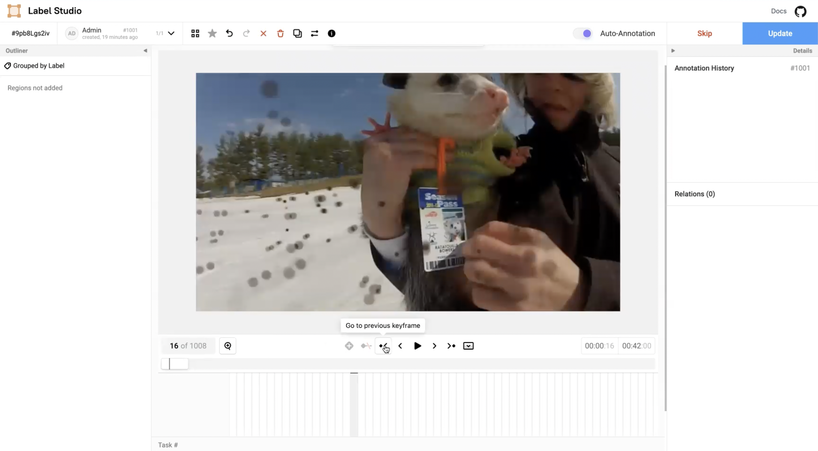 In the Label Studio UI, the video interface presents the main video canvas with controls that allows annotators to more precisely label blurry images using the following operations:
